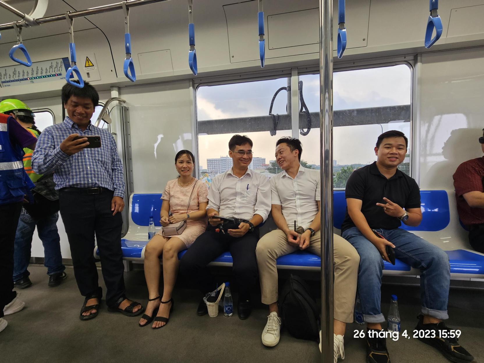 Được là một phần trong gần 2.000 hành khách trong lần chạy thử ngày 26/4, tập thể Công ty Quang Trung vô cùng hào hứng và thích thú. Trong khi được trải nghiệm, các thành viên đều đánh giá chuyến đi khá chất lượng, tàu chạy êm, không gian thoải mái và tuyệt nhất là được chiêm ngưỡng các danh lam, thắng cảnh cũng những công trình kiến trúc tuyệt đẹp và nổi tiếng tại thành phố mang tên Bác.