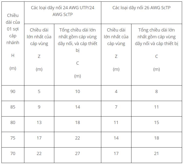 TCVN 9250:2012 - Chiều dài lớn nhất của cáp trong khu vực nhánh và khu vực thiết bị trong Data Center